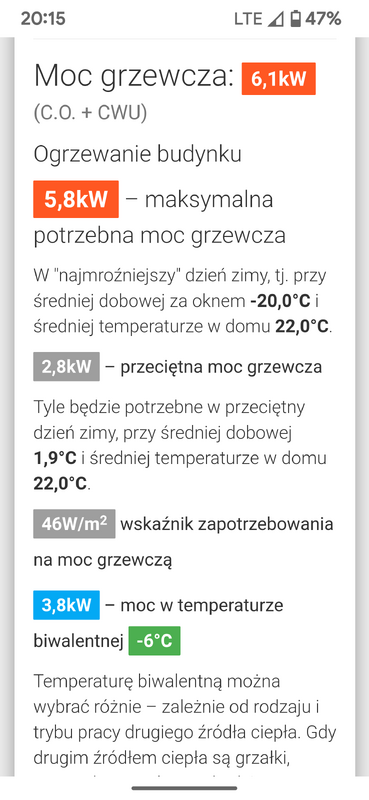 Mnie strona liczyła 6.1 kW źródło ciepła , gdy w domu 22 stopnie przy zewnętrznej -20 -