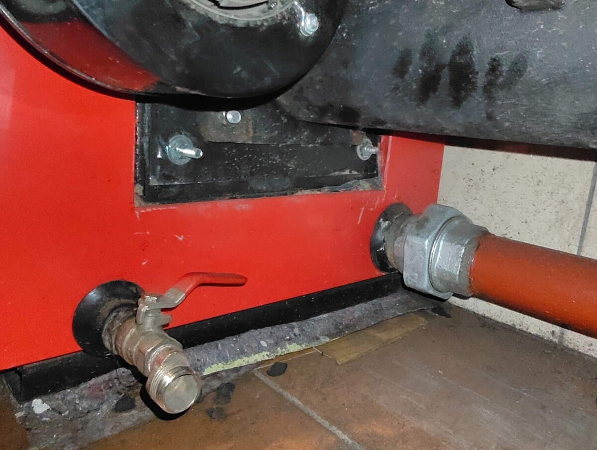 Niemam nic na powrocie. Jest podłączony bez niczego. Nie montowałem żadnych dodatkowych zaworów. Instalacja jest na rurach stalowych i jest grawitacyjna. Jest wszystko na jednej pąpce. -