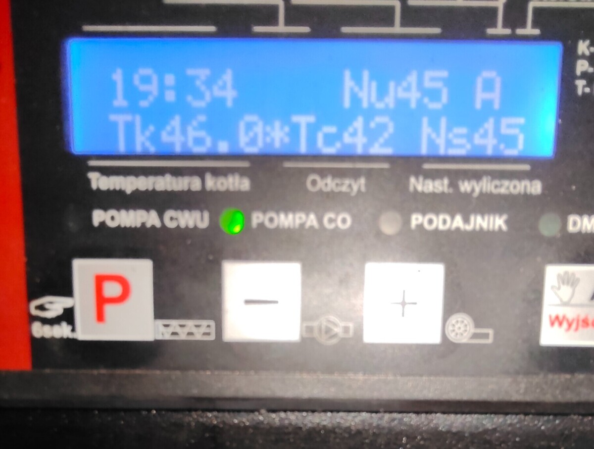 Nie ma takiego czujnika. Jest od temperatury kotła, podajnika, cwu i zabezpieczenie na wyjściu na 95 stopni. Odczytuje temperaturę powrotu czujnikiem o cwu. Bo mam ustawione brak cwu bo jest strop. Bojler jest wyżej w pralni a piec w małej piwnicy. -