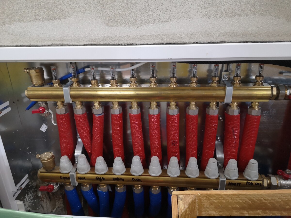 3. Dzień dobry wszystkim. Po rwz pierwszy na forum. Mam problem z ustawieniem instalacji co. w nowym domu. Wiem ze musze metoda prób i błędów ustawić optymalne temperatury, ale chciałbym zapytać czy Waszym zdaniem instalacja i podzespoły sa dobrze dobrane, czy juz na samym poczatku nie bede miec problemów z wyregulowanem. Dom jednorodzinny z poddaszem 168m2 pow. uzytkowej, 100%podlogowka, 11 petli na parterze i 10 na piętrze. Kociol gazowy Bosch Condens 2300W Kotlownia oraz rozdzielacze spięte w sposob przedstawiony na zdjęciach. Parter sterowany 1 regulatorem bezprzewodowym tech spietym do grupy pompowej Pietro sterowane regulatorami umieszczonymi w kazdym pokoju. Po pierwszych dniach od uruchomienia, pojawiło sie kilka pytań. 1. Temperatura na piecu max zasilania ustawiona przez instalatora od pieca 40 stopni C. Jako ze 100%podłogówka, więc nie ma zaworu mieszajacego. Czy taka temperatura moze trafiać na podłogówkę? 2. Temperatura ktora wskazuje grupa pompowa zasilanie 40 stooni, powrót 38 stopni nie jest za wysoka? 3.Co z kondensacja pieca ktora wynika z różnic temp na powrocie? Temp zadana w domu 21, na zewnątrz 10 stopni.