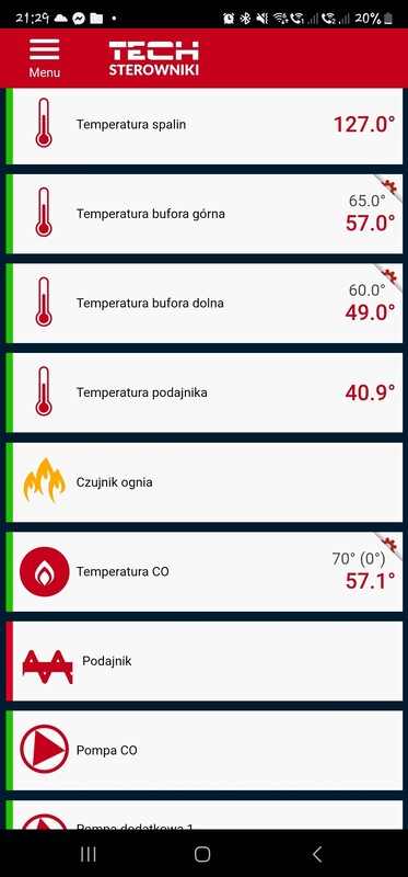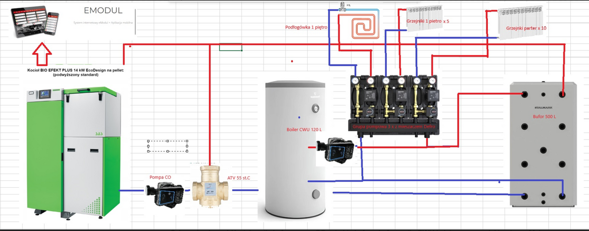 5. I tak i nie. Bufor mam ustawiony 65 góra i dol 60, piec 70 st. C Widzę, że grzejniki mocno drenują i piec nie osiąga więcej jak 53 st. C. TERAZ PO ZWIĘKSZENIU POMPY CO na max widzie wyższe temp. Ale to potwierdzę jutro.