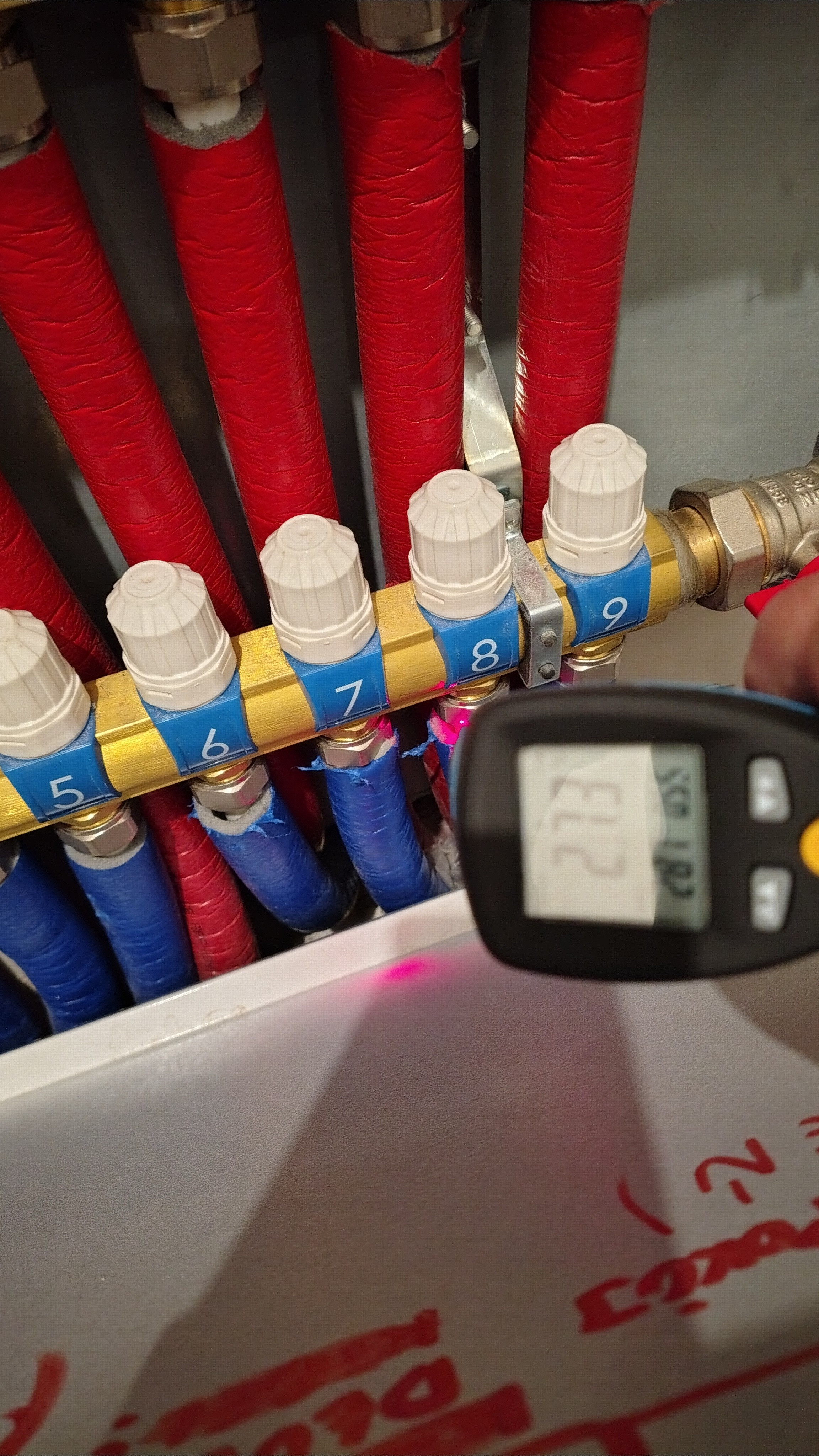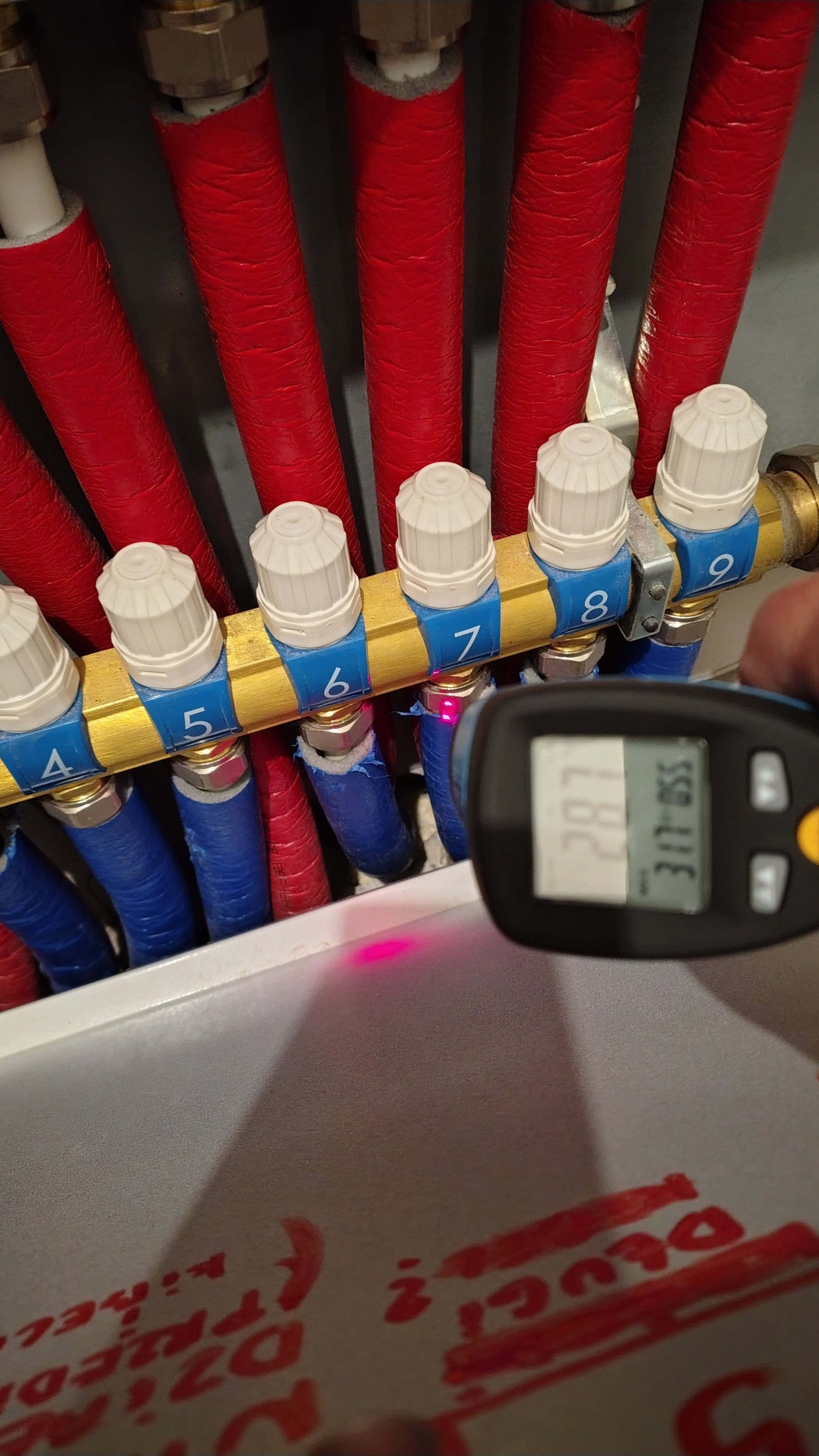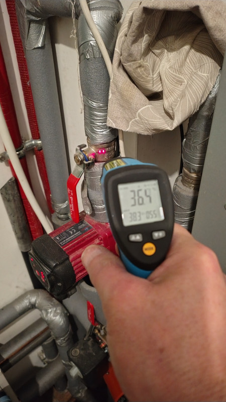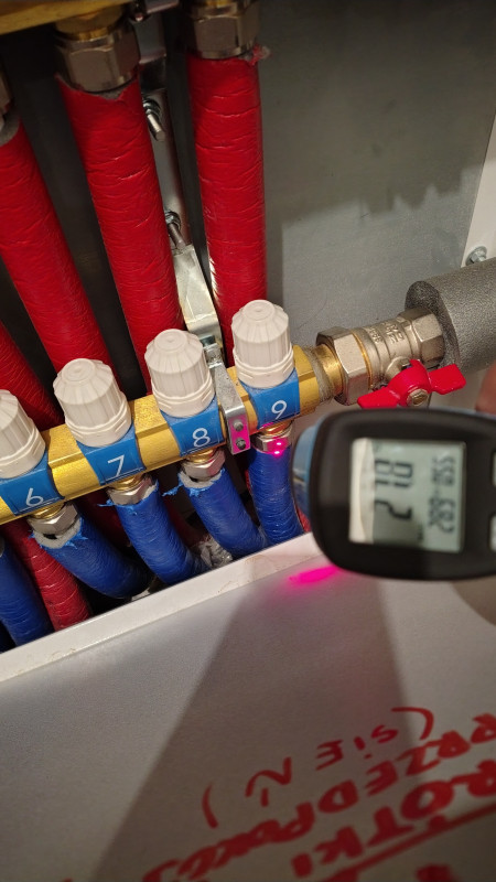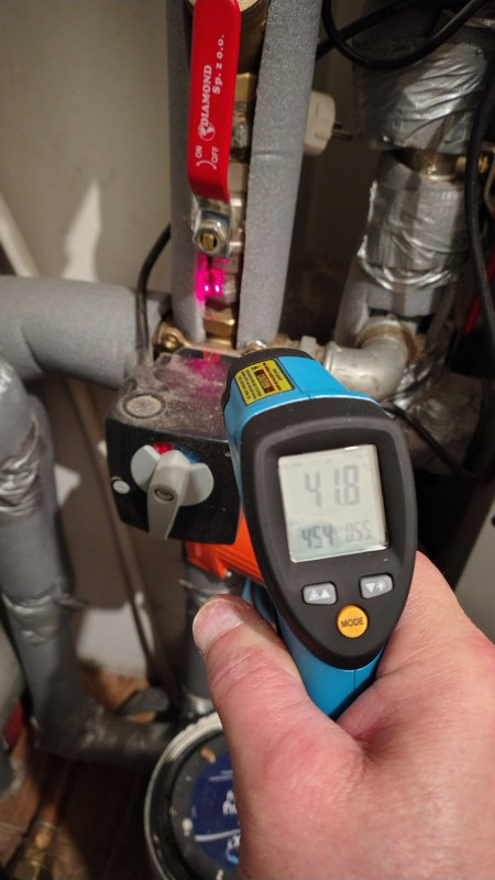Jeśli chodzi o zawór to na pewno jest dobrze,był taki kierunek już wcześniej na forum co zmusiło mnie do rozebrania zaworu na części pozycja "0" to jest maksymalny zamknięty. Zrobiło się chłodniej i już to widać na temp.zadanej kotła już nie chce dojść do 65 tylko max.58 a jest raptem -4. Dołączam zdjęcia temp.na wejściu w listwę jest rzeczywiście zbliżona do zaworu a powrót jest zimniejszy pomyliłem się wcześniej,bo już mi się to wszystko kiełbasi.
