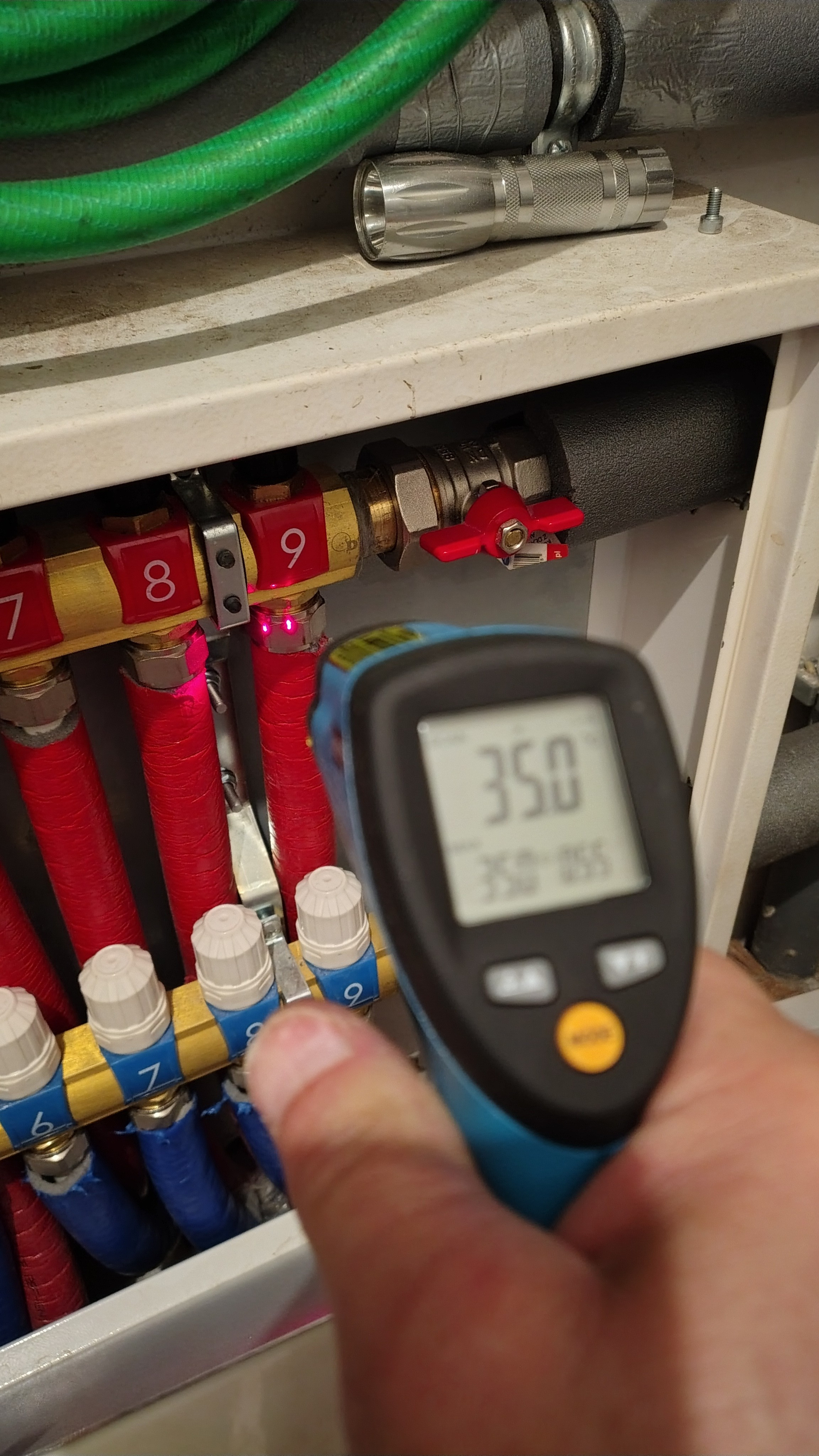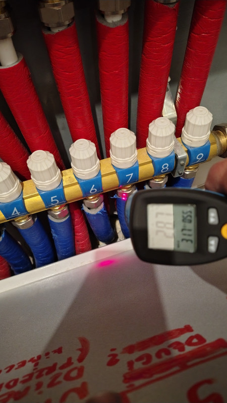 Ale te 35 to jest zadana temperatura zaworu jak mierzę termometrem na wejściu w listwę zasilająca to jest ok.26-27stopni. Przepływy są ustawione tak , żeby był komfort cieplny to już przerabialiśmy na forum zresztą z waszą pomocą i tam się za wiele zrobić nie da.Przeplywy ustawione na 4 najkrótszych pętlach na 1,8 następne 5 na 2.0 mniej to brak komfortu pompa na 1 biegu jak bieg pompy wyższy przepływ większy ale kocioł nie dochodzi nawet do 45 stopni,bo zalewa go zimna woda To są dobre pytania tylko ja nie znam na nie odpowiedzi pewnie ten co podłogówkę układał pewnie zna.