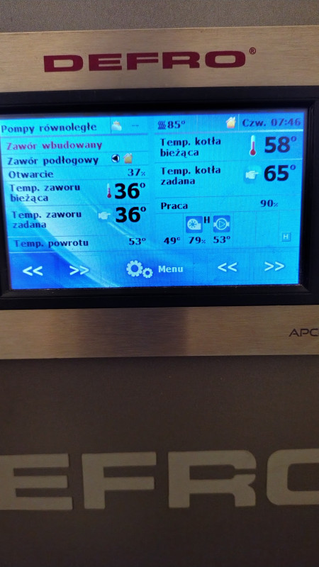 Witam kolegę Bercus twoje porady ostatnio też mi pomogły razem z kolegą Samborem udało się dojść do ładu z kotłem.Tym razem jest jednak inaczej wyłączenie ochronny powrotu nic nie daje jest jeszcze gorzej kocioł schodzi z temperaturą nawet do 46 stopni.Pompa CO czyli zasilania podłogówki pracuje przez cały cykl pracy grzania załącza się dopiero po przekroczeniu temperatury zadanej 53 stopnie. Widzę,że regulacją obrotów wentylatora w dół temperatura trochę rośnie kocioł pracuje w PID i trochę mnie to dziwi ale tak jest.