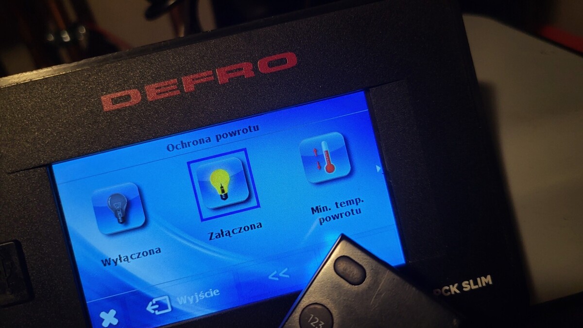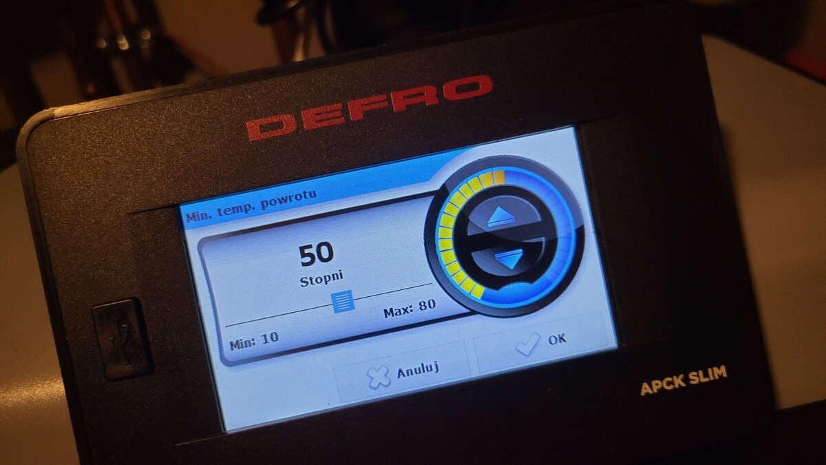 załącz ( zolta opcja ) i po prawej masz min temp powrotu. daj na 50 stopni. -