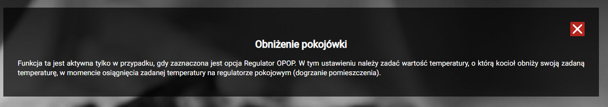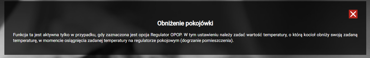 Bo ma załączony regulator pokojowy i obnizenie pokojowki 30 stopni. Lepiej niech wylaczy na razie ten regulator pokojowy albo zmniejszy wartosc obnmizenia pokojowki do 5 stopni. - pisalem o tym w poprzednim poscie. zawor obnizy zadana po info z regulatora o dogrzaniu - bez sensu taka wartosc. tu masz sciezke dostepu do tej opcji: -