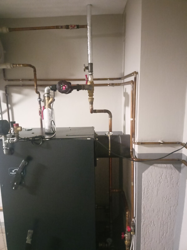 1. Witam, mam problem z kotłem kamen drx 20kw, a mianowicie kocioł nie może osiągnąć zadanej temperatury 65c w trybie praca, jeżeli zostawię tryb na rozpalaniu dochodzi do zadanej kocioł jest podpięty bez bufora, ponieważ instalacja ma duża pojemność wody i postanowiłem spróbować bez bufora jak będzie to pracować. Zawór ATV jest zamontowany jako rozdział i pytanie, czy jak dam zawór ATV jako mieszający i pompę na powru to poprawi to sprawność kotła? I czy muszę wtedy montować sprzęgło hydrauliczne? Zmieniałem już biegi pompy co wymieniałem już pompy na inne 3 razy xd, ale nic nie dało efektu zeby kocioł pracował prawidłowo instalacja jest odpowietrzona wszystkie grzejniki grzeją tak jak powinny tylko kocioł coś nie… dziwne jest to, że różnica między zasilaniem a powrotem wynosi 8-10c a kocioł nie chce dojść do zadanej temp, jak by go coś blokowało. Chciałem dołożyć wentylator wyciągowy, ale mam problem, bo jak go włączyłem to powietrze mi dmuchał do kotła (za blisko zamontowałem kocioł od ściany chyba i mi odbija powietrze od komina) komin mam 9 m wiec raczej ciąg powinien być okej. Teraz tez mam spaliny jak w DTR piszą między 110-150c.