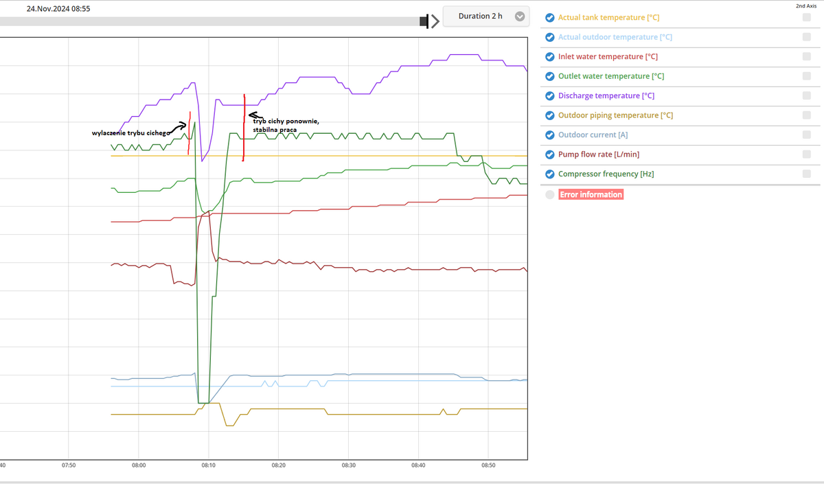 mam pompę od 5 lat i pierwszy raz obserwuje takie zachowanie. W sezonie przejściowym była ustawiona na tryb cichy (zauważyłem mniej włączeń). Przy -3 wylaczylem tryb cichy i zaczęła się jakieś dziwne taktowanie.
