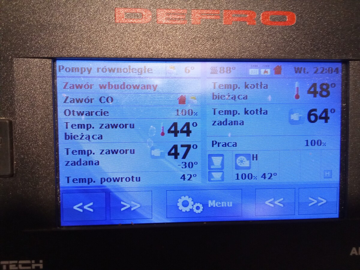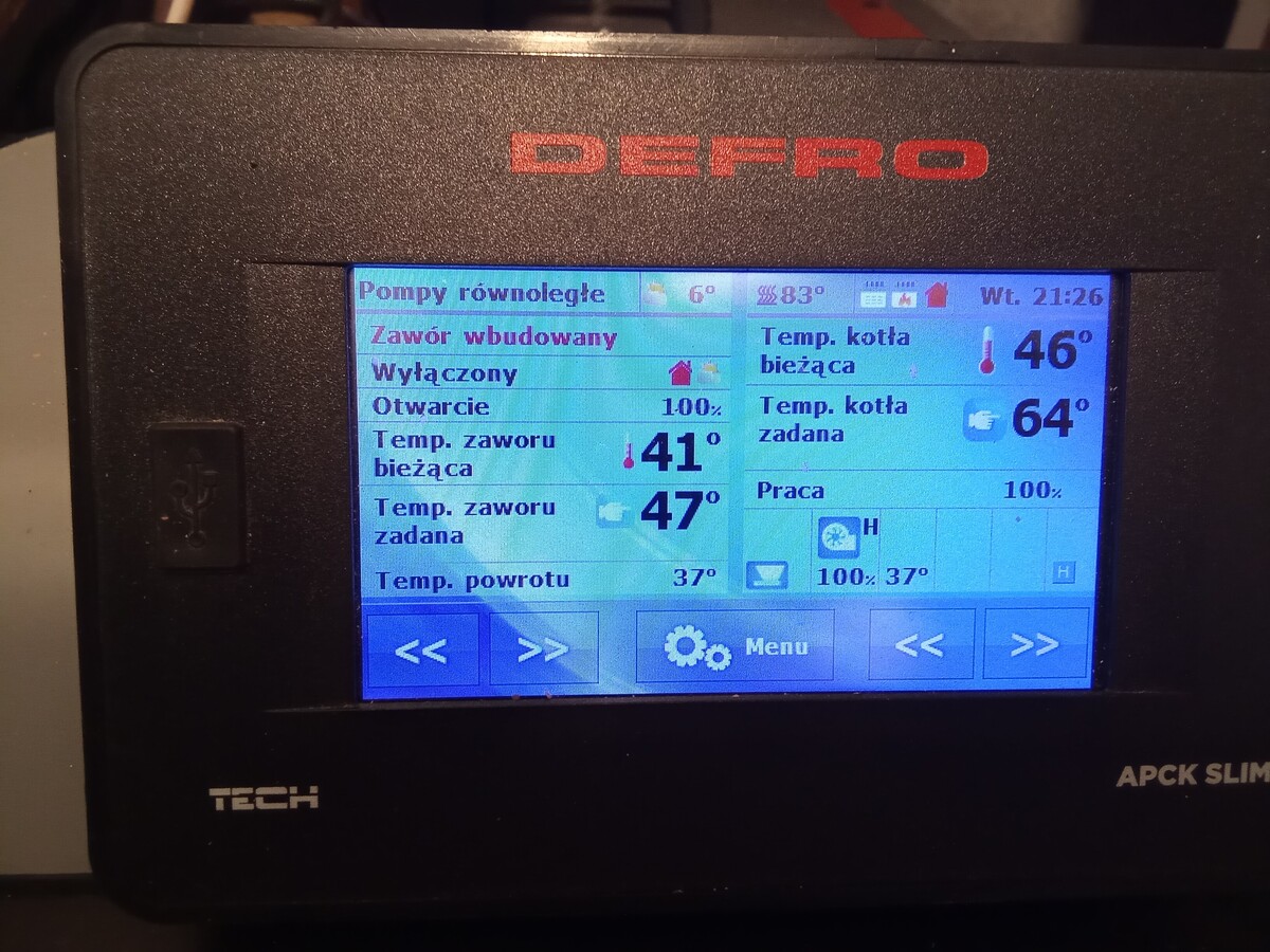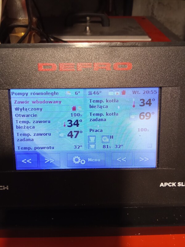 Dzień dobry Mam taki problem pięć Defro na pellet z podajnikiem. Od 4 godzin pięć się nią zalącza jest w trybie czuwania. Grzejniki w domu zimne a wskazania na wyświetlaczu sterownika jak na załaczonym zdjęciu. Nie wiem tak jak by nie było odbioru ciepła, nie wiem czy jakaś pompka czy zawór nie działa kompletnie się na tym nie znam. Ktoś coś poradzi?