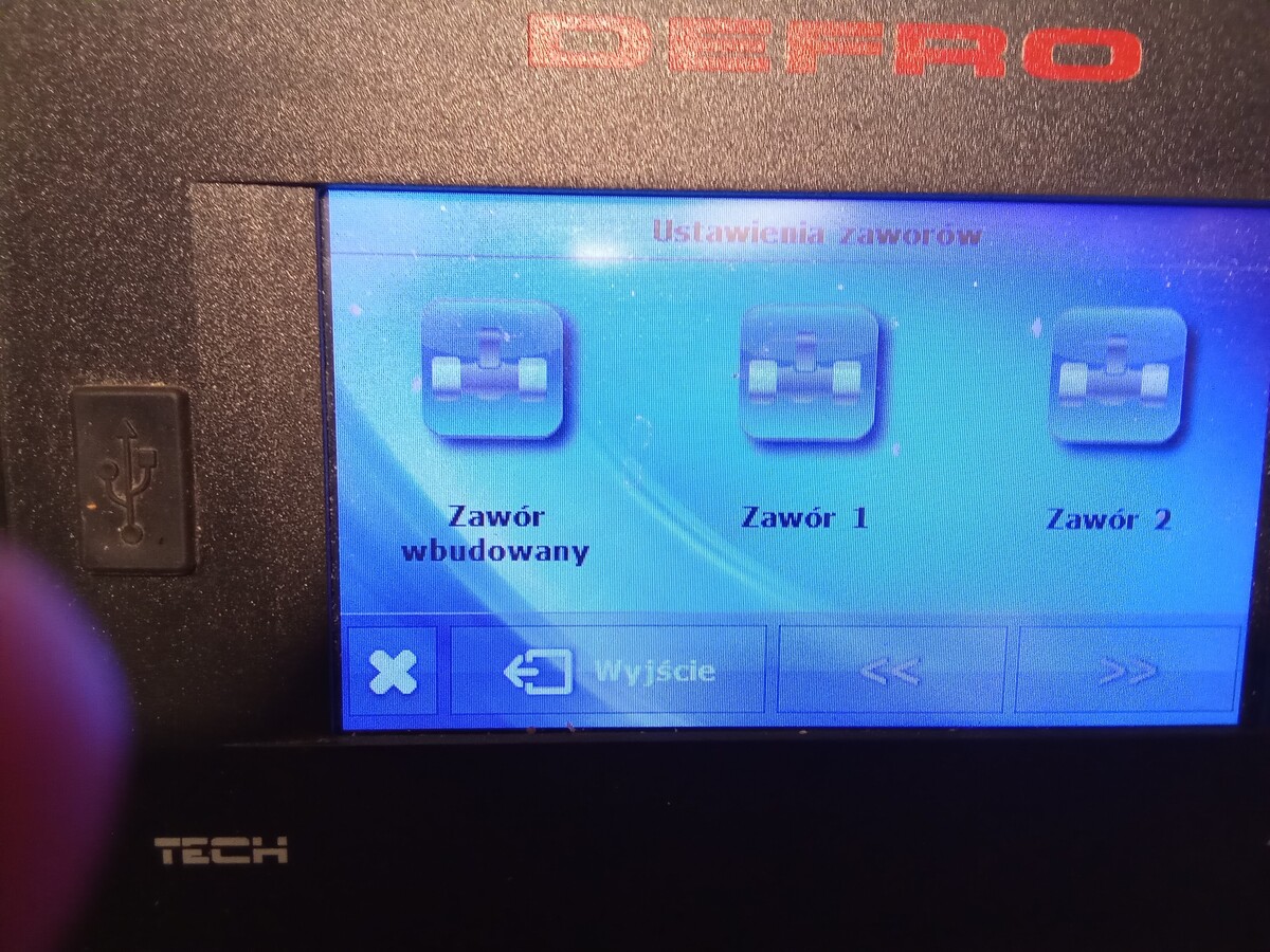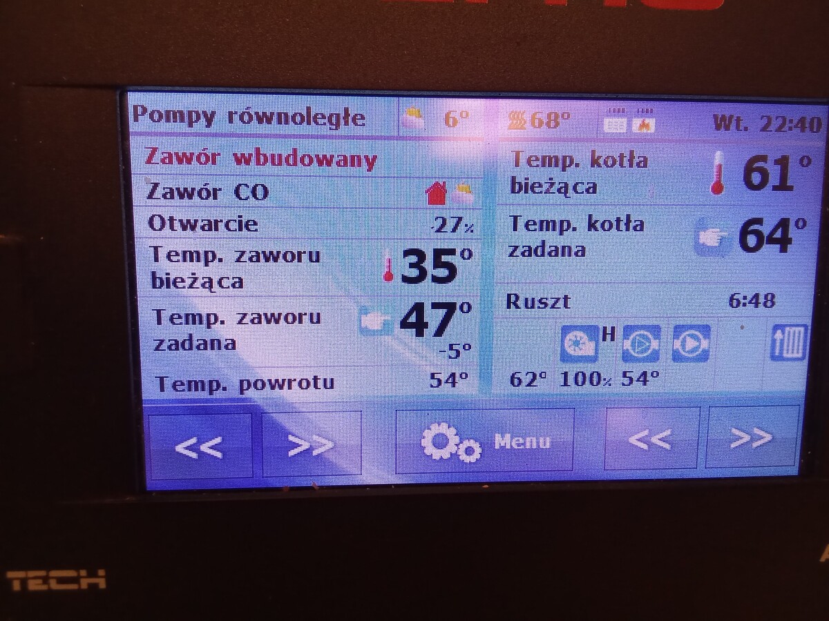 Podświetlone na zółto (załącz zawór) Właczyłem pojawiła się ikonka temperatura zaworu. Pompka zaświeciła na pomarańczowo. A na wyświetlaczu sterownika wygląda teraz tak. -