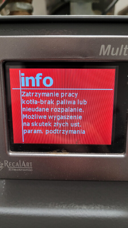 2. Cześć. Od kilku dni mam problem z rozpaleniem kotła przy powrocie z z podtrzymania. Rozpala się normalnie w trybie rozpalania, ale jak już pracuje, to występują błędy jak na zdjęciach. Zasobnik jest zasypany pelletem a pięć się wygasza. Tak jaky nie dawal rady się rozpalić po trybie podtrzymania. Nie zmieniałem ustawień. Poprostu w tym sezonie zaczął się taki problem. Proszę o jakieś podpowiedzi. Dzięki