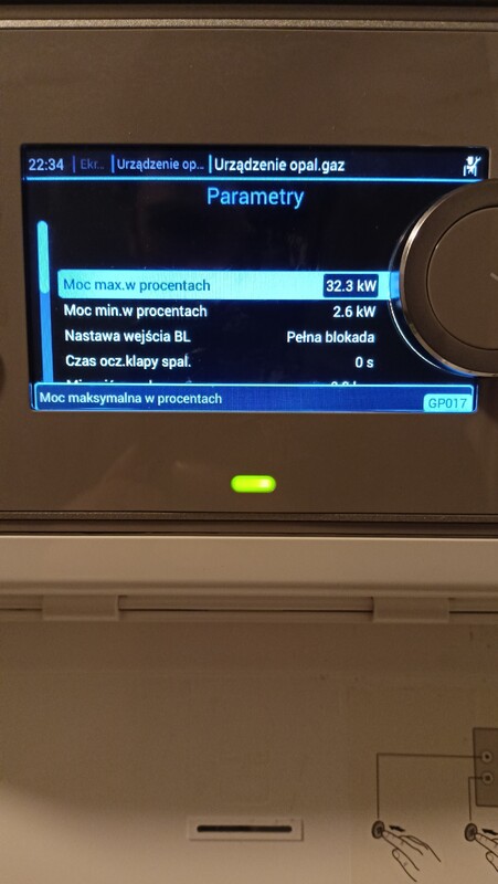 Znalazłem dwa parametry GP017 i GP050. Nie bardzo rozumiem jak to mam zmienić. Skąd taka wartość 32.3kW ? Przecież piec nie ma takiej mocy.