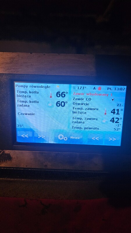 Dom około 260 metrów, ocieplony. Sterownik pokojowy, zadana temp pokojowa 22 stopnie.