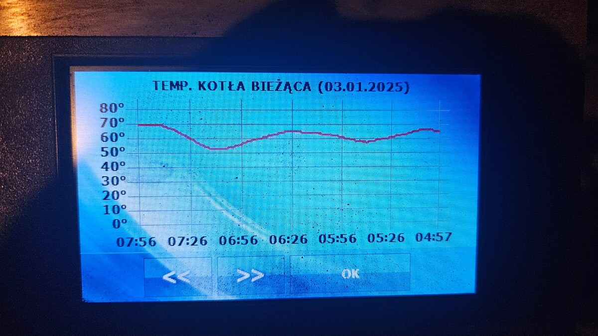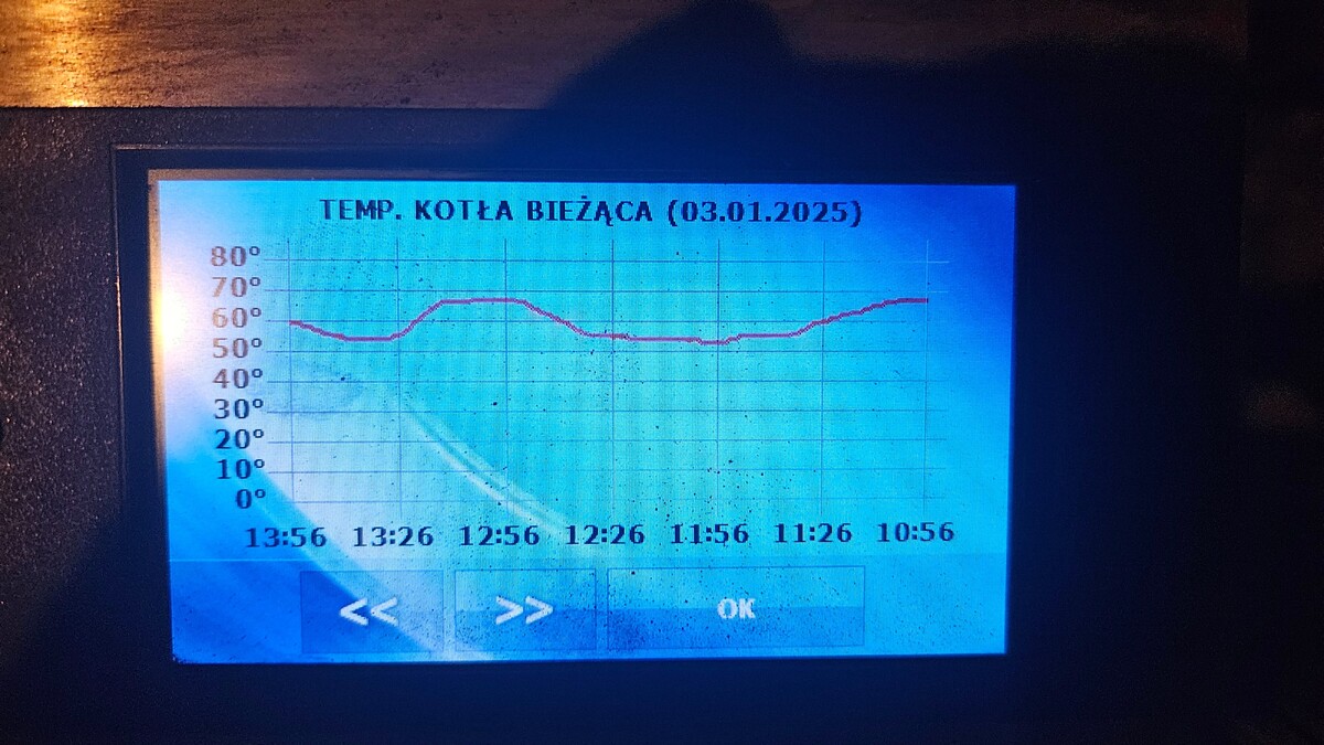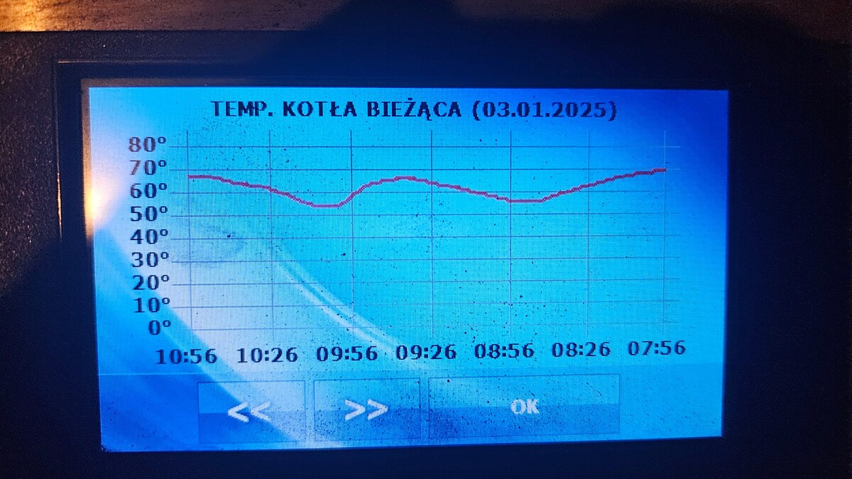 1. Wypłaszczenie wykresu temperatury kotła. Czy wykres temperatury zadanej i bieżącej kotła jest ok oraz czy jest możliwość i sens wypłaszczenia wykresu. W instrukcji kotła jest napisane, że przy dobrym ekogroszku temperatura może skoczyć nawet do 20 stopni poza zadaną, więc tym bym się nie martwił, ale zastanawia mnie czemu spada tak nisko, przy histerezie 2 stopnie.