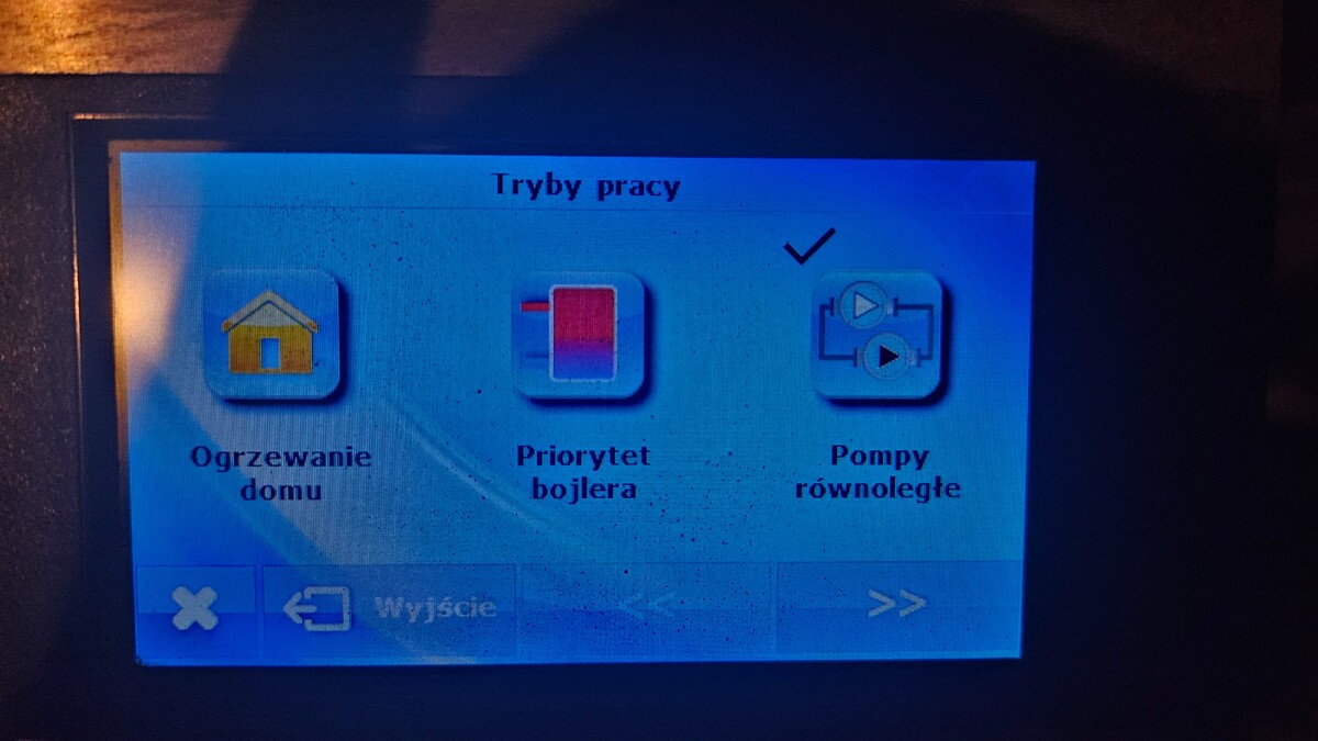Dwie pompy - CO i CWU plus zawór czterodrożny, tryb pracy: pompy równoległe.