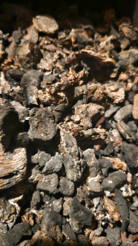 3. Popiół - zawiera mieszankę małych spieków, sypkiego popiołu oraz małych, zdaje się niedopalonych kawałków węgla. Paliwo: ekogroszek Karlik, KWK Piast, Wola.