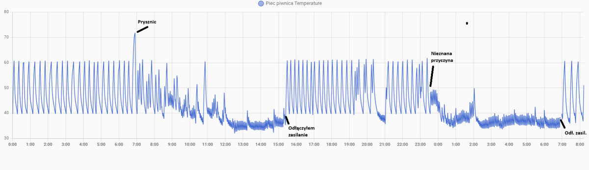 Załączam wykres grzania z dwóch dni. Czasem jeden reset wystarczy, a czasem potrzebne dwa, żeby piec zaskoczył.