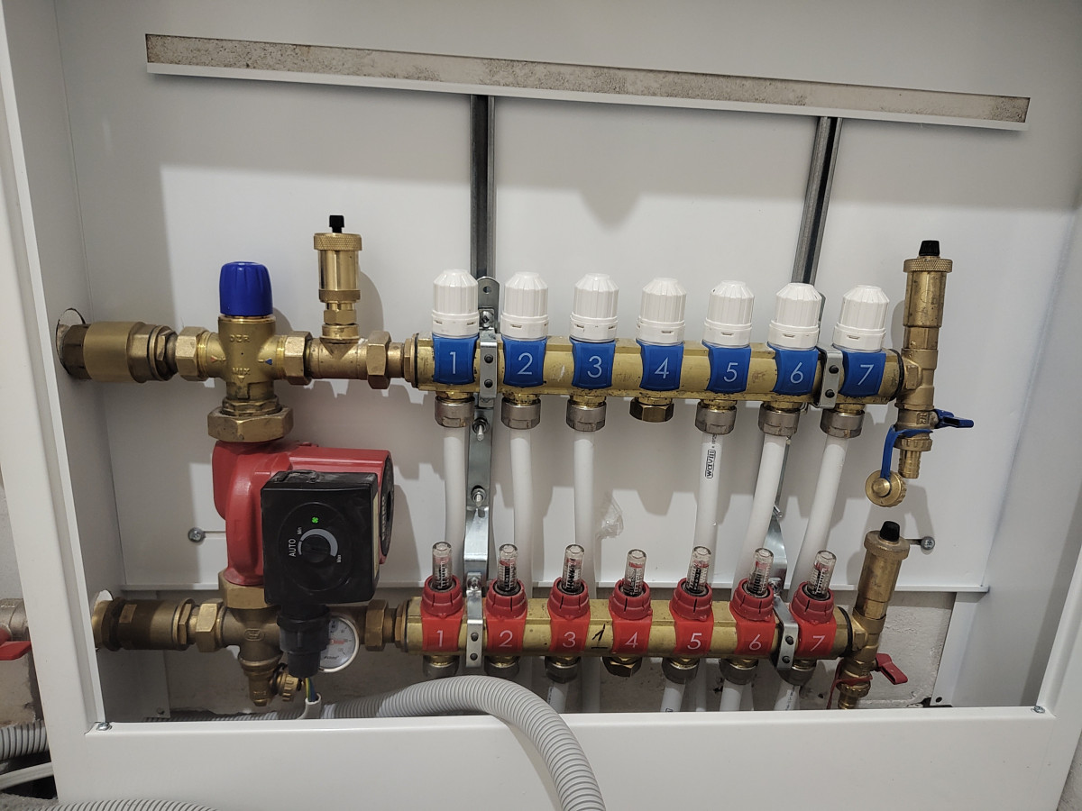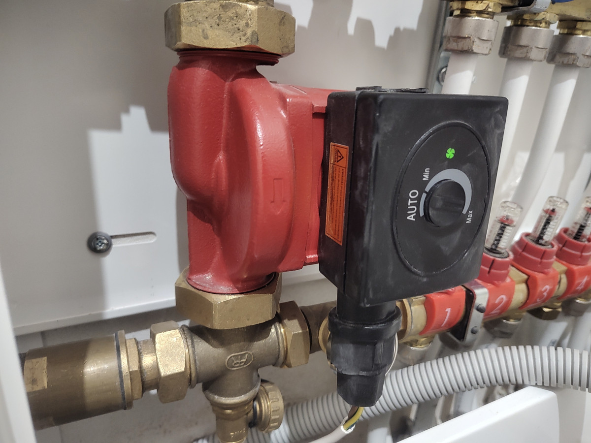 Dzień dobry, mam problem z ogrzewaniem podłogowym, hydraulik zamontował mi obwód pompowy z pompą purmo, od góry wchodzi ciepła woda a od dołu wychodzi. Problem jest z tym że podłoga praktycznie nie grzeje a przepływ na rotametrach jest tylko w momencie zakręcenia termostatu nad pompą. Gdy go rozkręcam w kierunku +40 przepływy są na 0.. hydraulik twierdzi że to pewnie przez zapowietrzenie obwodów podłogówki. czy możecie rzucić okiem na podłączenie tej pompy czy tak jak jest, jest ok?