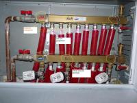 Witam szanownych forumowiczów.Wszystkie tęgie głowy proszę o poradę.Chodzi o podłogówkę.problem tkwi w kuchni.Grzejniki w pokojach są ok,ogrzewanie podłogowe w salonie i łazience też gra.Jedynie z ogrzewaniem w kuchni jest coś nie tak.tzn podłoga nagrzewa się do połowy...druga połowa jest zimna.Zawór termostatyczny i rurka na powrocie jest całkowicie zimna.Dodam iż wszystko chodzi na jednej pompce,która teoretycznie powinna dać sobie rade z obiegiem.Na załączniku przedstawiam widok rozdzielacza.