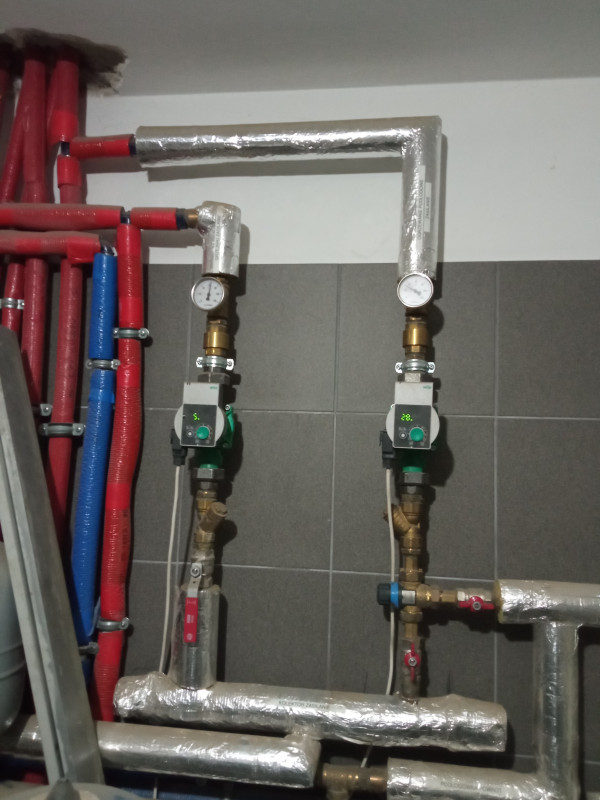 2. Witam. Posiadam piec na pellet. Pompka wilo rozkręcona na maksa, pcha wodę na górny i dolny rozdzielacz. Problem jest taki że mam bardzo słabe przepływy na rotometrach jak odkrece dwa rozdzielacze na górze i na dole to przepływy ledwo dochodzą do 0.5. Pętlę odpowietrzone, pompką także, filtr wyczyszczony. Jak zmniejsze temperaturę na zaworze 3d to przepływ się zwiększa ale to nie przekłada się na temperaturę w pomieszczeniach. Na dole rozdzielacz który zasila 5 pętli, na górze 4 pętlę. Pytania: 1- czy jedna pompka powinna obsługiwać górę i dół? 2-mam kilka zakrętów na zasilaniu 90 stopni czy to mocno pogarsza przepływ? 3-dlaczego jak zostawię tylko jedna pętlę odkręconą to przepływ jest tylko 3?