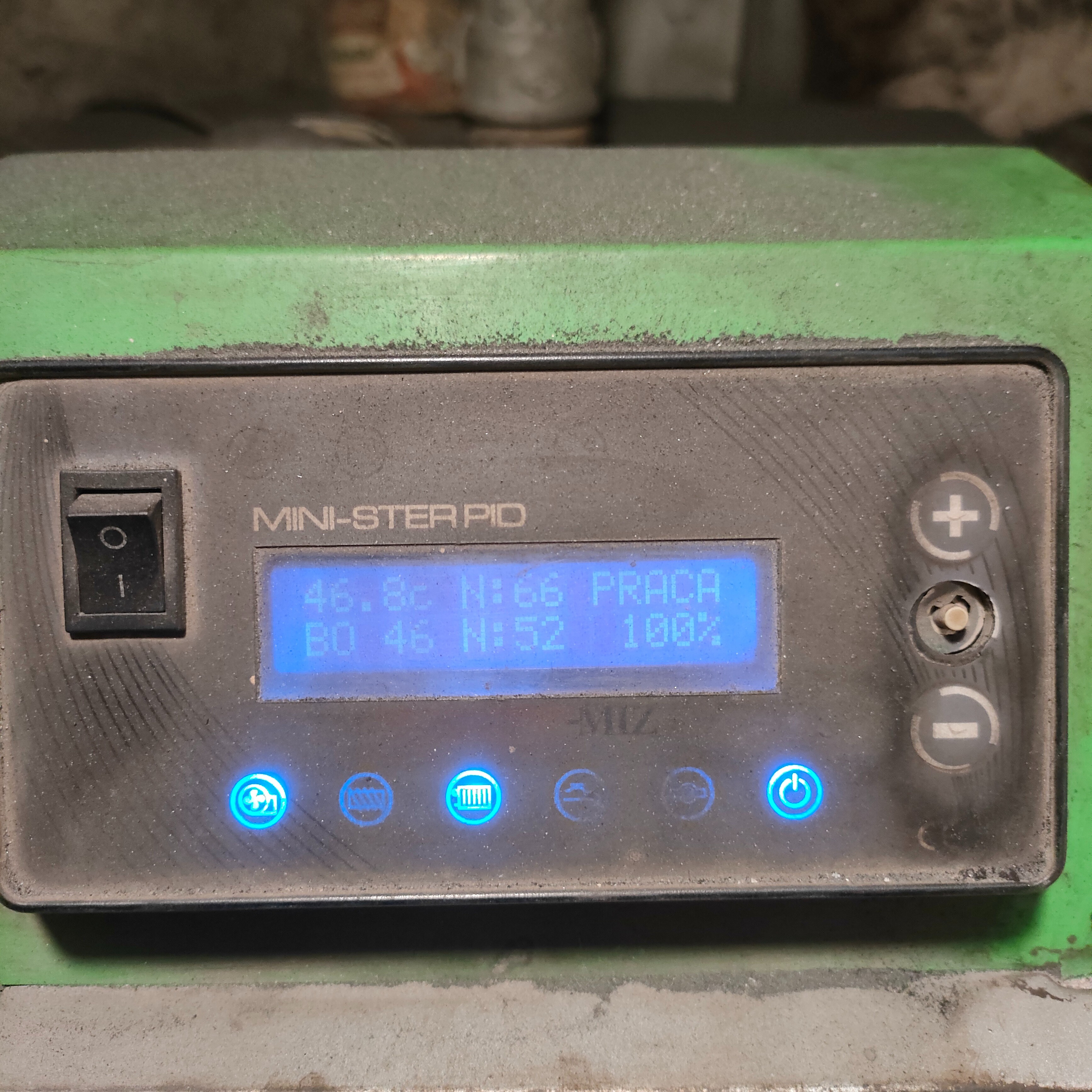 Piec na ekogroszek 15kw Sterowniki mini ster pid Elektro-miz Piec taki jak na zdjęciu Podajnik 8.0 s Pauza 80s Limit obrotów dmuchawy 70% Żądana temperatura 66C Histereza 2 Zawór 4d