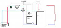 4. Witam! Planuję przerobić instalacje w domu u rodziców. Zrobili sobie remont, założyli podłogówke i tak dalej. Dom stary ale docieplony, dach nowy. Kocioł jeszcze stary, przewymiarowany. Teren wiejski, zimą czasami nie ma prądu kilka, kilkanaście godzin. Myślę że to ważne bo kocioł na paliwo stałe, przewymiarowany. Dom 80m2, wszędzie podłogówka,w łazience +1 drabinka. W pomieszczeniu przyległym kotłownia. Jestem w posiadaniu: 3D: ESBE VTA372, 1", Kvs=3.4 30-65stC 1szt 4D: ESBE VRG141, 1" Kvs=10 1szt Pompy: Wilo 25/4, Grundfos UPS 25-60 Sterownik Auraton 1111 Multi Zawór STS 20 (Watts) Wymiennik stojący Biawar W-E 150.81 (150l.) Do podłączenia jeszcze garaż (na oko 26 starych żeberek żeliwnych). Raz na jakiś tydzień będzie potrzeba dogrzać to. Nie wiem gdzie to podłączyć. Bo pomieszaną wodą max to trochę słabo. Nie chce dawać kolejnej pompy, Grawitacyjnie powinno pójść. Chyba. Nie wiem czy jest sens dawać zawór 3D. Może lepiej go sprzedać i kupić siłownik do 4D? Ten z serii Ara może? Co radzicie? Gdzieś jakieś zaworki zwrotne, inne ważne dodatki?