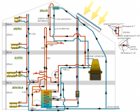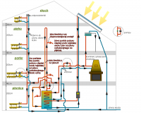 Dziękuje za rady. Ale muszę się wytłumaczyć .Dom który buduję od 8 lat - buduję samodzielnie tzw bez zatrudniania firm . Jest ocieplony ponad przeciętnie to znaczy: ściany 20cm styropianu z dodatkiem grafitu, ściany piwnic 15cm styropianu z dodatkiem grafitu, strop nad piwnicą 10cm styropianu, podłoga w piwnicy także 10cm styropianu , dach 30cm wełny mineralnej , dla całych okien  i drzwi zewnętrznych k=0,9.Dom jest pozbawiony mostków przez które by mogło uciekać ciepło. Myślę że dom będzie miał bardzo małe zapotrzebowanie na energię cieplną rzędu 40kw/m2. Prawda jest taka że gdybym miał dość kasy to nigdy bym nie zawracał nikomu głowy moimi wypocinami “projektowymi” , po prostu zatrudnił bym firmę , zlecił bym zrobienie projektu wraz z instalacją i by było po sprawie. Kasy tyle nie mam więc proszę o pomoc. Dziękuje wszystkim za dobre rady a szczególnie Panu Mikos89W. Załączam mój  poprawiony dzięki wam “projekt”. Z poważaniem potek.