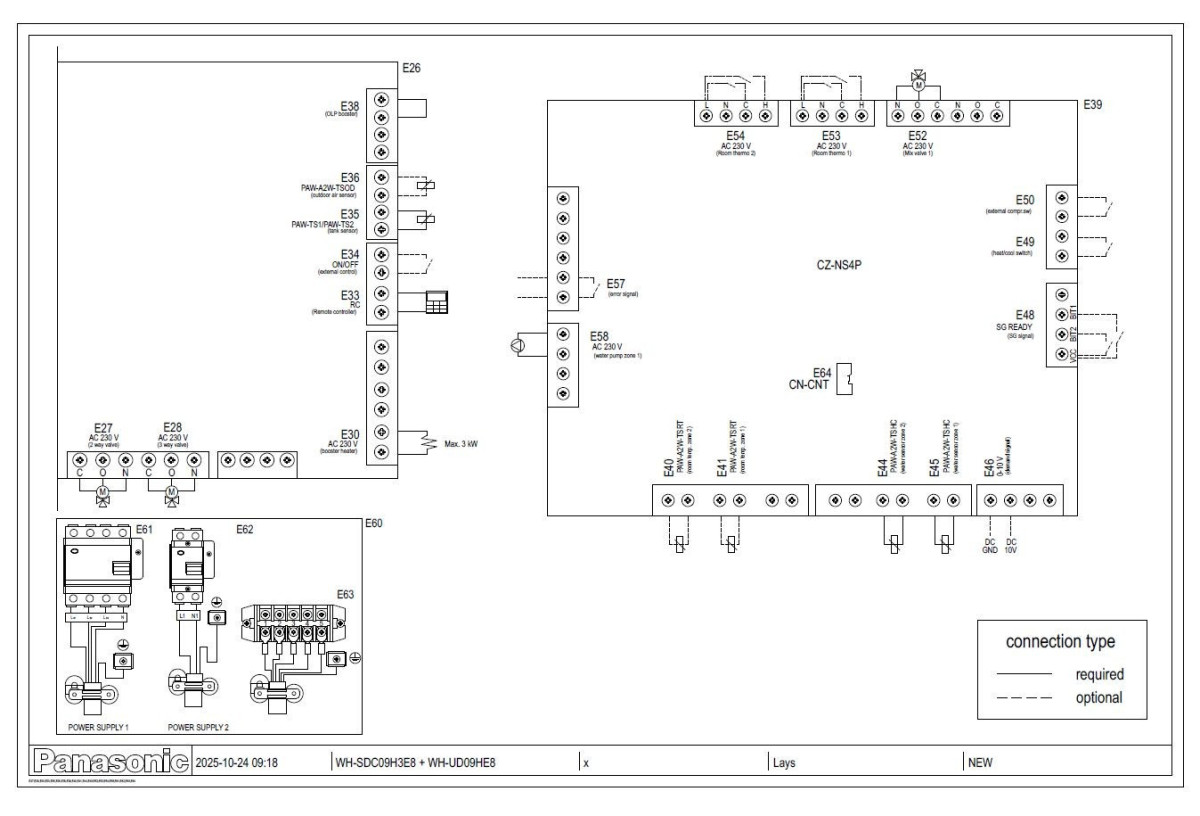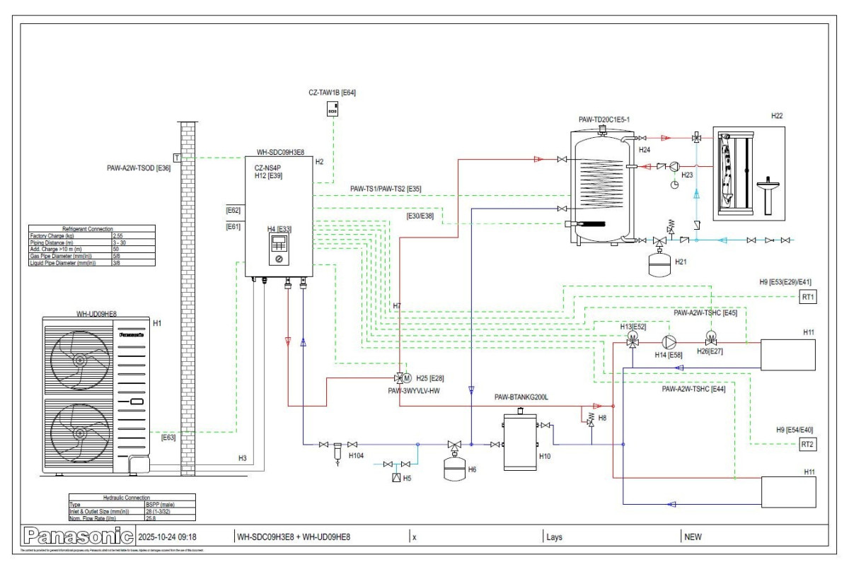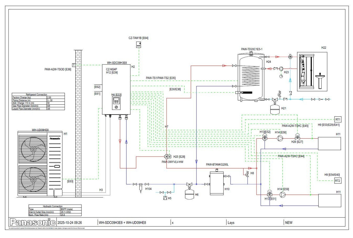 Więc kolego @lays by tak to działało powinieneś mieć zamontowaną w jednostce wewnętrznej pompy ciepła dodatkową płytę rozszerzeń Panasonic CZ-NS4P. Poniżej prawidłowy schemat instalacji hydraulicznej w dwóch wersjach. -