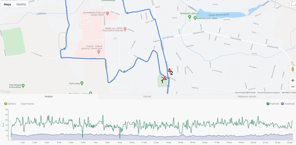 Ja wiem i nie mam nic przeciwko temu. Korzystam z tego dobrodziejstwa i cały czas (całą dobę) mam włączoną lokalizację w mapach Google. Poniżej print screen z "spaceru na rowerze" aplikacja Endomondo. Zaznaczyłem mój kierunek przemieszczania. 1 - początek trasy wąskimi uliczkami bez wydzielonego chodnika 2 - powrót z trasy i przy skrzyżowaniu ulicy Stalmacha z Piaskową ścieżka rowerowa jest po drugiej stronie jezdni. Dokładnie widać jak zmieniłem swoje położenie w stosunku do jezdni. Taka dokładność jest ogólnie dostępna dla cywili. Geodeci lokalizują (wraz z wspomaganiem) z dokładnością do 5 mm. Znając zasady GRY, zawsze można obejść obostrzenia. https://superbiz.se.pl/wiadomosci/brawurowa-ucieczka-czarneckiego-plan-na-miare-jamesa-bonda-aa-UhvS-wA6W-LZPF.html -