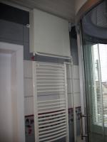Witam Minęło trochę czasu. Łazienka już dawno po remoncie. a tak było przed A teraz jest tak: Mimo to że zasilanie zbiornika (grzejnika) jest na dole to nagrzewa się cały - oczywiście przy otwartym zaworze (czerwone pokrętło). Ten zawór jest praktycznie zawsze zamknięty bo nowy grzejnik daje wystarczająco dużo ciepła (poprzednio 7 żeberek żeliwnych). Poza tym przy ścianach zewnętrznych jest ustawiona wanno - kabina .A między ścianą a kabiną, aż do sufitu 3 cm styropian.To w dużym stopniu ociepliło łazienkę. Dodam jeszcze to że zbiornik wyrównawczy przy zamkniętym zaworze po czasie też jest ciepły - widocznie ciepłe powietrze z grzejnika ogrzewa ten zbiornik Również gorąca woda z instalacji w minimalnym stopniu podgrzewa zbiornik. Zbiornik wykonałem z zwykłej blachy 5 mm (odzysk z starego kotła ) . Ciekaw jestem jak długo będzie służył.