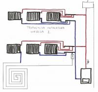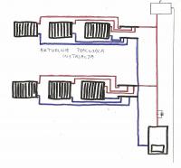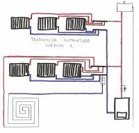 guitar - bardzo dziękuję za odpowiedź. Ratujesz mi życie ;) bo za jakiś miesiąc muszę zrobić wylewki i do tego czasu podłogówka ma być gotowa. Mam kolejny pomysł. Zerknijcie na załączone zdjęcie i napiszcie, co myślicie. Jeśli wskazane jest doprowadzenie oddzielnych rur zasilających instalację ogrzewania podłogowego, to czy można pompę i zawór mieszający zostawić w kotłowni a same rozdzielacze dać w mieszkaniu? Zaletą takiego rozwiązania będzie mniejsza skrzynka (nie musi być w niej miejsca na pompę i zawór) oraz cisza (nie będzie słychać w mieszkaniu pracującej pompy). Zawór i pompa w takim rozwiązaniu będą około 2 metrów od rozdzielacza (w piwnicy a rozdzielacz na parterze budynku). Drugie pytanie brzmi: jaka grubość rur potrzebna jest do zasilania rozdzielaczy podłogówki? Trzeba dać fi28 tak, jak na rozdzielacze kaloryferów, czy mogą być cieńsze? Pozdrawiam Tomek