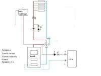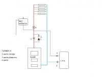 Pytanie jakiej średnicy zawór zastosować - najbardziej odpowiednią wydaje mi się 6/4" również cały obieg kotłowy w tej średnicy. Usytuowanie zaworu na rysunku odzwierciedlałoby jego faktyczne zamontowanie oczywiście jak najbliżej pieca. W grę wchodzi również przeróbka zasilania c.w.u i wstawienie dodatkowej pompki bo bez tego raczej się nie obejdzie.Mam możliwość podłączenia powrotu z bojlera do osobnego króćca w piecu co zaznaczyłem linią przerywaną. Takie podłączenie eliminowałoby wpływ pompy c.w.u na pracę zaworu 4D, a skoro mam taką możliwość podłączenia więc chyba warto to wykorzystać. Również zmiana podłączenia naczynia wzbiorczego bezpośrednio na wyjściu z pieca.