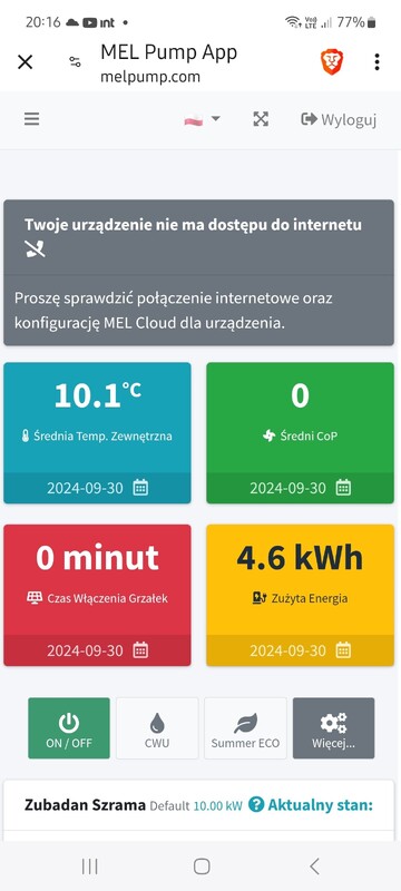 Moja pompa pracuje na autoadaptacji, w ciągu ostatnich 2 tygodni były 3 krótkie przerwy w zasilaniu i po każdym ponowne poszukiwanie ustawień. Dom przegrzany, zużycie energii wyraźnie wyższe.