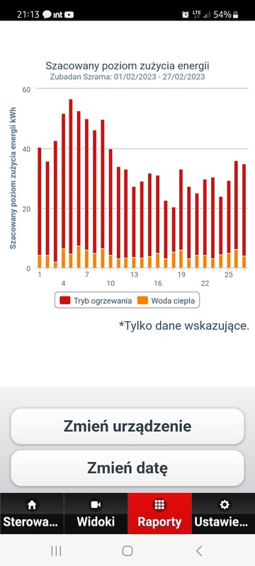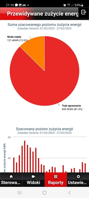 Moja pompa Zubadan 10 KW odpalona 29.12 ubiegłego roku, do wczoraj skonsumowała 5 776 KW. Mam fotowoltaike 10 KWP. Biorąc pod uwagę ile ekogroszku zużywałam, źle nie jest, dom 220 m2, ocieplony 18 cm styropianu, dwupoziomowy. 3/4 grzejniki, reszta podlogowki, CWU 300l. 2 rodziny, łazienki, kuchnie. Sterowanie za pomocą krzywej grzewczej. -