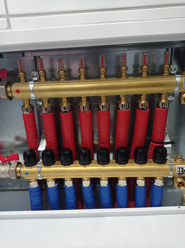 Jak w temacie , osiem pętli odkręcone na max , powroty otwarte , przepływy 0,5l , piec Immergas . Rury zasilające rozdzielacz PP32 , przy montażu pieca firma zamontowała odcinki rur PP25 widoczne na zdjęciach , twierdzą że oni tylko takie montują do zasilania rozdzielaczy , i nic do nich nie dociera . Wymienić te rury na PP32 , dołożyć dodatkową pompę . Gdy zakręcę jeden obieg wtedy przepływ na pozostałych trochę się zwiększa .
