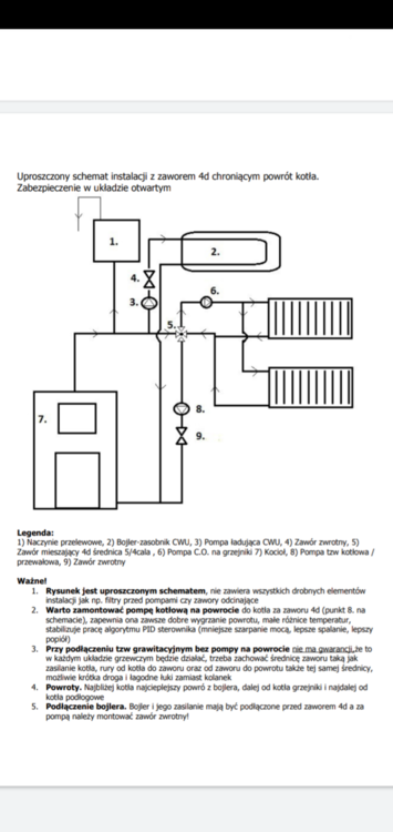W DTR kotła SKAMP-PV na samym końcu znajduje się taki uproszczony schemat instalacji. Zrób w ten sposób, aby kocioł posłuży , będzie można na kotle mieć zadane 60st.C a za zaworem puścisz ile trzeba 35 czy 41 na grzejniki. Na grzejniki załóż termostaty i będzie komfortowo, wygodnie oraz ekonomicznie. Dodatkowo fotka po wymianie kotła w starszym domu i kotłowni. Zamontowany Regulator Ciągu Kominowego, zawór mieszający 4d z pompą na powrocie. Instalacja to praca kolegi z forum. -