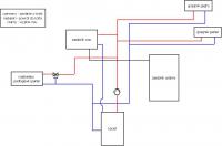 Zastanawiam się tylko czy w przypadku centralnego odpowietrzenia nie pokusić się o użycie Pexa. Jest jednak tańszy, a w założeniu, że ta część instalacji będzie służyła do odpowietrzania, a nie do przepływu czynnika ciepła, nie będzie tam zbyt wysokich temperatur. Oczywiście schemat, który narysowałem wcześniej jest tylko poglądowy. Poniżej przedstawiam dokładniejszy.