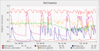 52 to raczej za dużo. A co wynika z wykresu w sterowniku? U mnie przy +6 są 42 stopnie za zaworem 4d (krzywa z tego co pamiętam 5, temperatura zadana 21). Załączam wykresy, które pokazują temp. za zaworem (zielone w temp_kotlownia) w zależności od temp. zewnętrznej (ciemnozielone na temp_zewn).