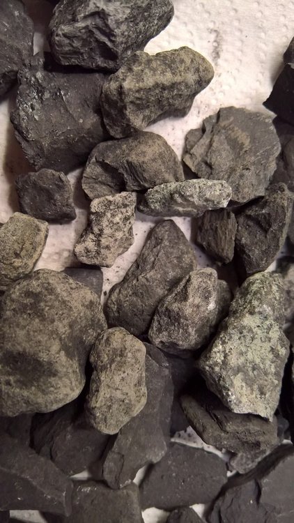 Kupiłem ostatnio doraźnie parę worków we Franspolu (budowlany) groszku SZTYGAR (Synergio). Węgiel kupowany zima - woda wylewała się z worków jak z kranu. Teraz węgiel suchawy. Pali się dobrze. 920 zł za tonę. Wygląd i parametry na zdjęciach. Jedyna wada tego opału to kamienie. Jest tego w każdym worku od ok. 150 gramów do prawie 1 kg. Kamienie utytłane na czarno, więc trudno na pierwszy rzut oka rozpoznać, ale już po przełupaniu widać idealnie co to jest. Taki 1 kg kamieni w worku 25kg netto to jednak już 4% jest. A napisali, że popiołu max 7%. Więc trochę lipa. Na zdjęciu z jednego worka wybrane z grubsza, prawie pół kilo. Sam Franspol jako dostawca jest OK, obsługa uprzejma, załadują do auta woreczki. -