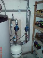 Witaj vozik, jeżeli chodzi o cyrkulację: mam pompkę grundfos 15-14, która ma za zadanie ściągnąć zimną wodę z rury z ciepłą wodą i tak to u mnie działa pompka ma swój filtr zawory kulowe i zawór zwrotny wszystko na 1/2 cala wpięte w zbiornik i sterowane zegarem dobowy, co do naczynia wzbiorczego wisi ono u mnie obok zbiornika cwu, i jak na razie super ciśnienie 4,5bara, zawór do 6 barów, manometr do 10 i odpowietrznik, do tej grupy podpięty jest powrót ze zbiornika CWU, aby zapobiec skokom ciśnienia w domowej instalacji-jeżeli coś jest nie tak to napisz. Natomiast jeśli chodzi o termostat to bardzo z nim kłopotów nie mam bo działa super i nagrzewa dom też super, gorzej z kotłem a w zasadzie z opałem-miał, ni cholery nie mogę doregulować, raz jest ok, raz rano wstaje i piec wygasł. Jeśli coś masz do zaproponowania chętnie posłucham. Pozdrawiam Tomasz.