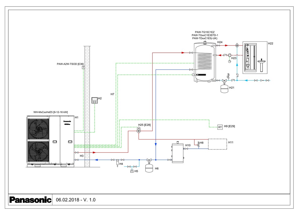 Modernizacja instalacji grzewczej Przeniesienie bufora na powrótsambor odpowiedział(a) na Tedisan temat w Pompy ciepła Tu masz schemat buforu na powrocie , 1 obieg grzejny+ CWU- to schemat Panasonica Bufor w tym przypadku zapewnia większy zład wody wymagany do defrostu. Zasilanie bojlera jest po za buforem, więc powrót też może być po za buforem, ale to mało istotne - czy przed czy za buforem nie ma znaczenia.