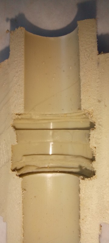 Aby nie być gołosłownym, poniżej przekrój połączenia rury PP 25 z mufą, zgrzew średniej jakości , ale na pewno był szczelny. Zdjęcie jest mojego autorstwa, samo złącze też. Materiał zgrzewany - chyba Wavin. Proszę opisać jak to można rozdzielić bez niszczenia rury i złączki - widać pełen przetop obu elementów na długości ok 15-17mm, łącznie z wypływem nadmiaru na zewnątrz i wewnątrz mufy.