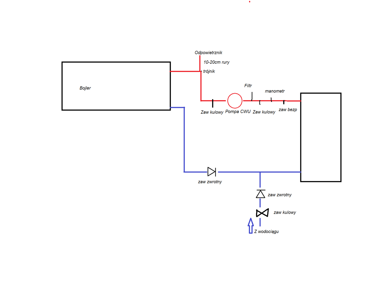 Tu nie idzie o "pomysł", tylko ja też mam swoje zajęcia! Poniżej masz schemat, jak powinno to wyglądać: Oczywiście naczynia przelewowego (otwartego) nie ma.
