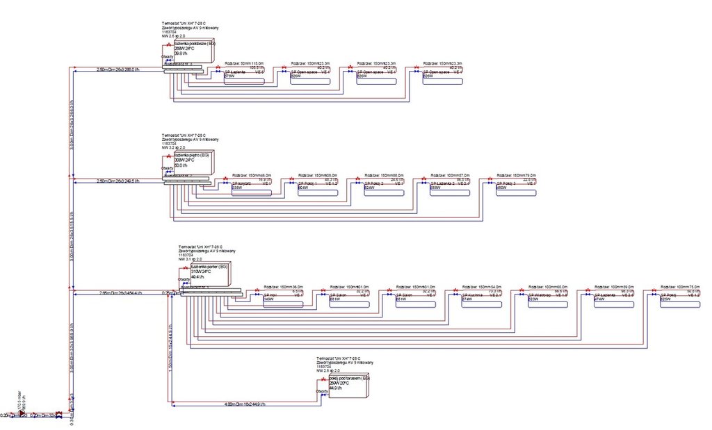 Przy podłogówce , jak ma być wprost bez sprzęgła to trzeba patrzyć na pompę w kotle i jej możliwości. I tu zanim się zacznie coś robić warto wstępnie wybrać kocioł i zrobić pod niego instalację- najpierw na papierze a dalej w budynku. Wynik takich obliczeń może być np jak poniżej gdzie jest podłogówka i grzejniki zasilane z tego samego obiegu.