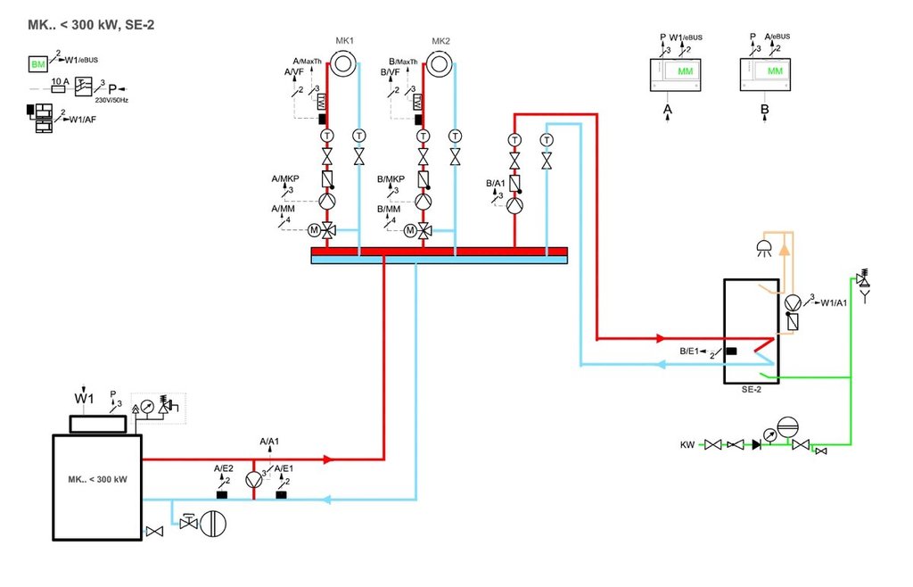 Co robisz jak pompa w kotle nie wydaje - też bez sprzęgła? Tak to starsza wersja, ale jest też nowsza, do 350kW na tym schemacie jest nagrzewnica i 2 x podłogówka + CW