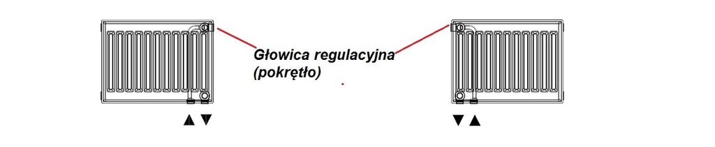 Grzejnik dudni jak jest za duży przepływ, czyli za mocno ustawiona pompa w kotle, lub odwrotnie podłączone - pomylone zasilanie z powrotem Powinno być tak jak na rys poniżej, co łatwo sprawdzić gdyż rura zasilająca grzejnik jest cieplejsza.