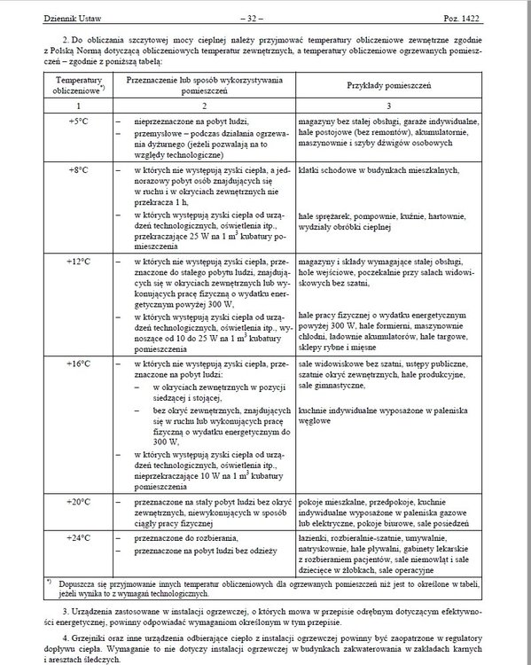 22. Panowie - temp pomieszczeń określają np Polskie Normy oraz Warunki Techniczne jakim powinny odpowiadać budynki! Poniżej wymagania projektowe ( do obliczeń potrzebnej mocy grzewczej), podane temp są minimalnymi.