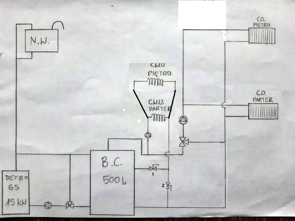 Z tego co piszesz masz grzać 2x CW? Jak tak to nie rozumiem dlaczego puszczasz grzanie CW na piętrze przez zaw 3-D? To raczej powinno tak wyglądać: Powrót z grzania CW oczywiście 2 a nie 1!