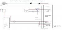 Witam Proszę o ocenę schematu instalacji, poniżej bardzo ogólny schemat, nie nanosiłem wszystkich zaworów zaworków spustów wody. Zastosowane pompy to EFP 25 - 40, podłogówka ma 3 poziomy, kotłownia jest na najniższym poziomie. Mam pytania 1. Czy dobrze jest iż piec nagrzewa bufor przez wężownice, a podłogówka pobiera wodę z bufora, może lepiej jakby było odwrotnie czyli podłogówka przez wężownice a kocioł z buforem w jednym otwartym układzie. 2. Na jakie biegi powinny być ustawione pompy pompę miedzy kotłem a buforem mam na "2" pompę od podłogówki mam na "3' 3. Czy nie powinienem mieć mocniejszej pompy do podłogówki przy tej pompie max przepływ to 2 litry/minute na 3 poziomie jest nawet poniżej 2