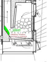 Patent fajny z tymi śrubami. Co do twojego pomysłu to uważam że szamot przede wszystkim powinien być na skosie, tak jak narysowałem bo tam jest największe wychłodzenie "woda z powrotu". Było by ok, wykorzystać mój pomysł jak na rysunku i na to zamocować twoje rozwiązanie, było by prawie idealnie. Myślałem jeszcze żeby po bokach dać trójkąty z cegły o szer 6 cm, na których opierałby się szamot od "rury wezyra" idący od góry od ceownika do ceownika dało by to takie efekt że palnik miałby szamot z każdej strony i oczywiście powietrze znad zasypu. Poniżej mniej więcej jak by to wyglądało, bo dokładnie to wyjdzie w praniu, zdjęcie pieca wewnątrz pożyczyłem od kolegi Ricorro i jest to zdjęcie KWKD 22 więc w KWKD 15 będzie bardziej wąsko oczywiście. Całość opierała by się na płaskowniku dospawanym do skośnej półki.